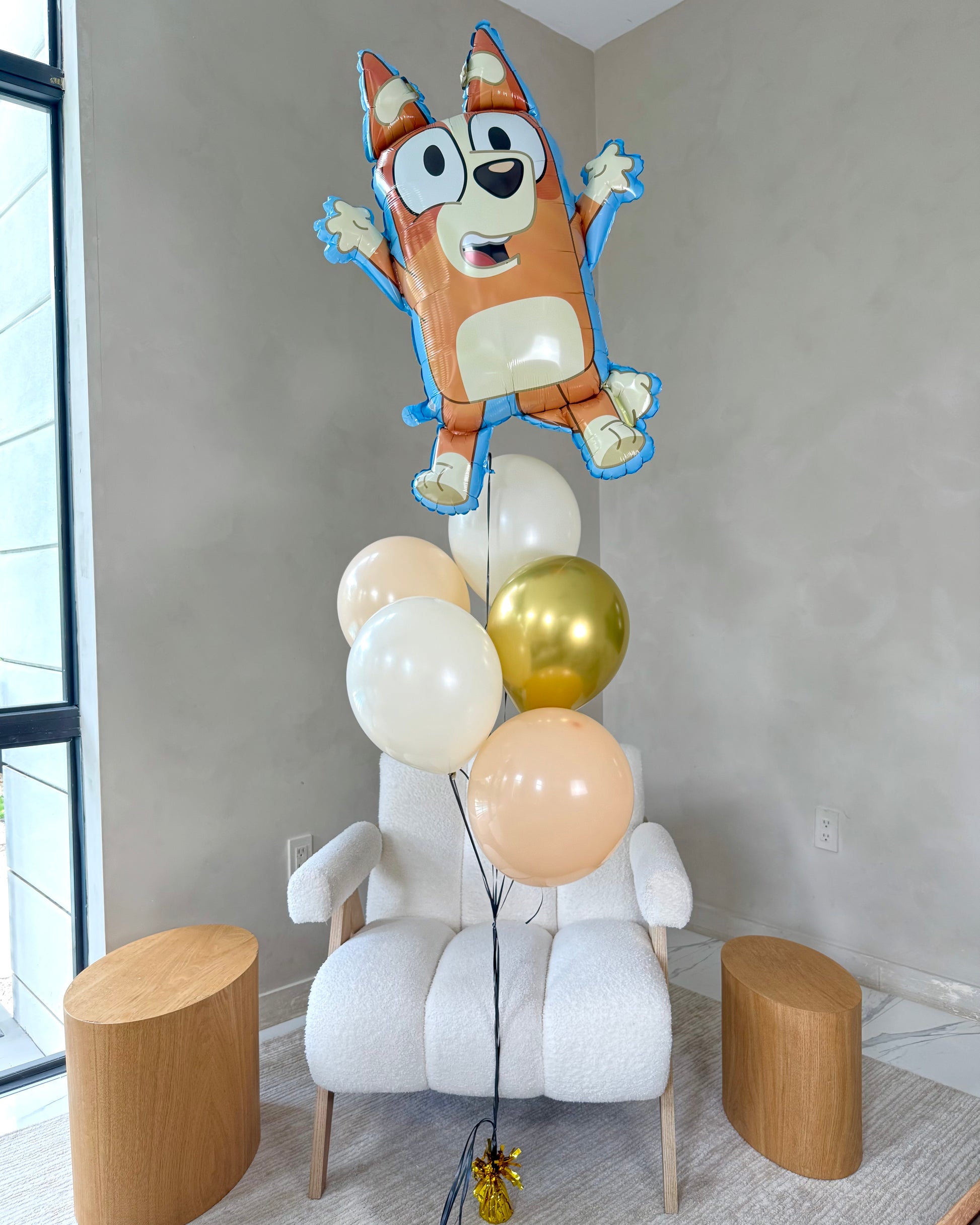 Giant 34" Bingo From Bluey Foil Balloon With 5 Nude Gold and Beige Helium Balloons Bouquet