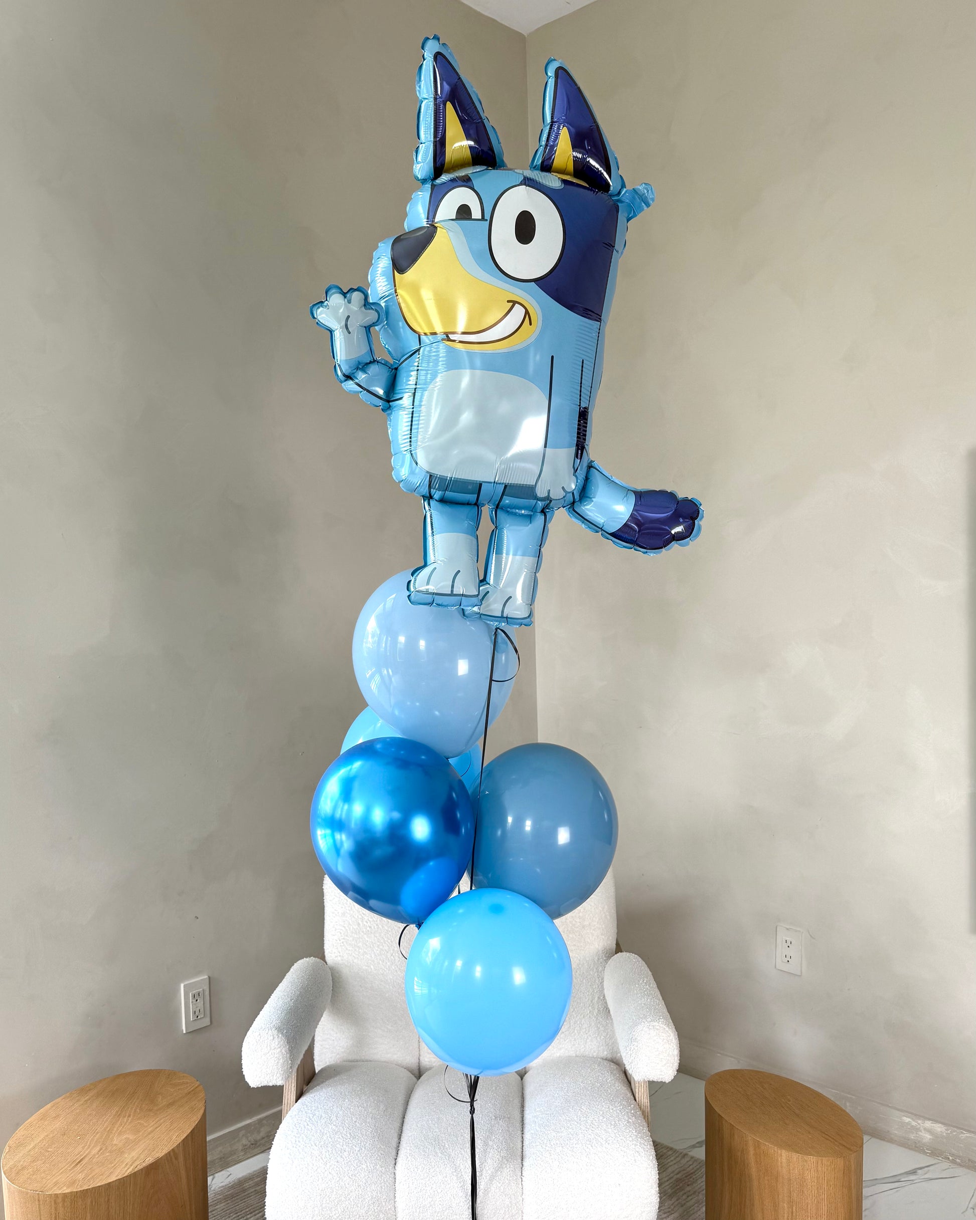 Giant Bluey Foil Balloon With 5 Blue Helium Balloons Bouquet