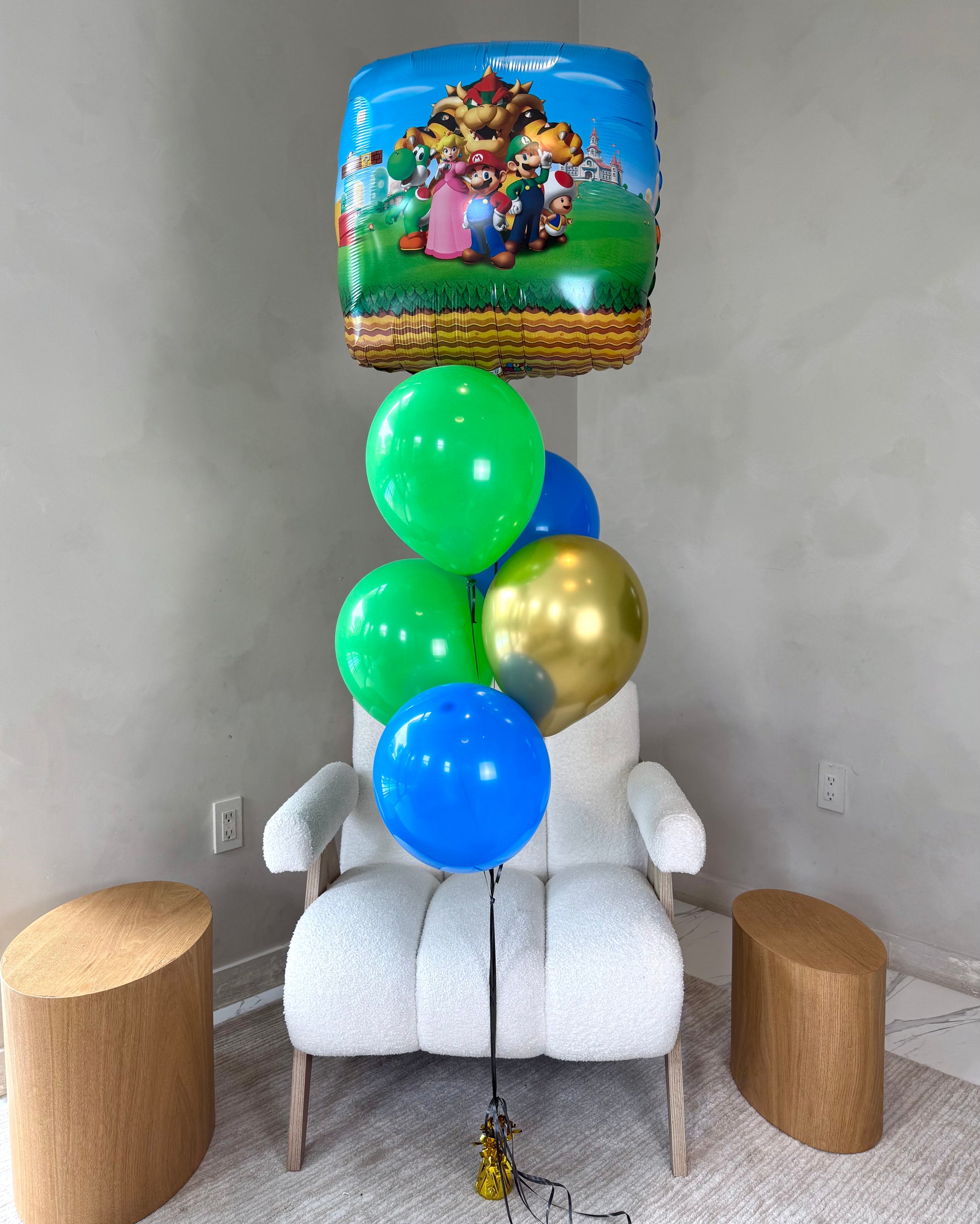Celebrate any occasion with the Giant XXL Super Mario Bros balloon bouquet, featuring five vibrant helium balloons. This eye-catching set combines a large Super Mario Bros character balloon with four complementary helium balloons, creating a festive and playful display. Perfect for birthdays, themed parties, or special events, this bouquet adds a dynamic and colorful touch that delights fans of all ages. Easy to set up and designed to float gracefully, it brings instant joy and a memorable atmosphere to your celebration.