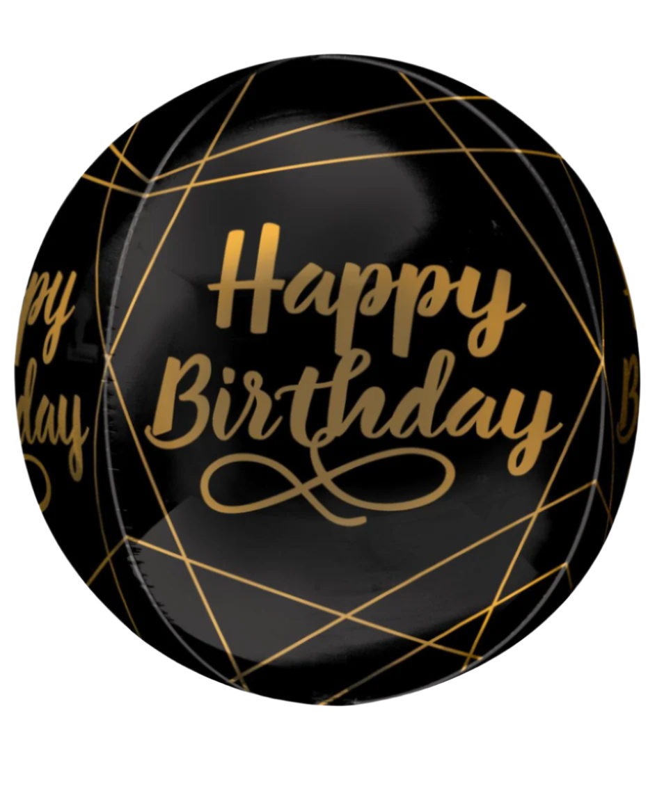 Giant Orbz Happy Birthday 24" Black and Gold Foil Balloon With Helium