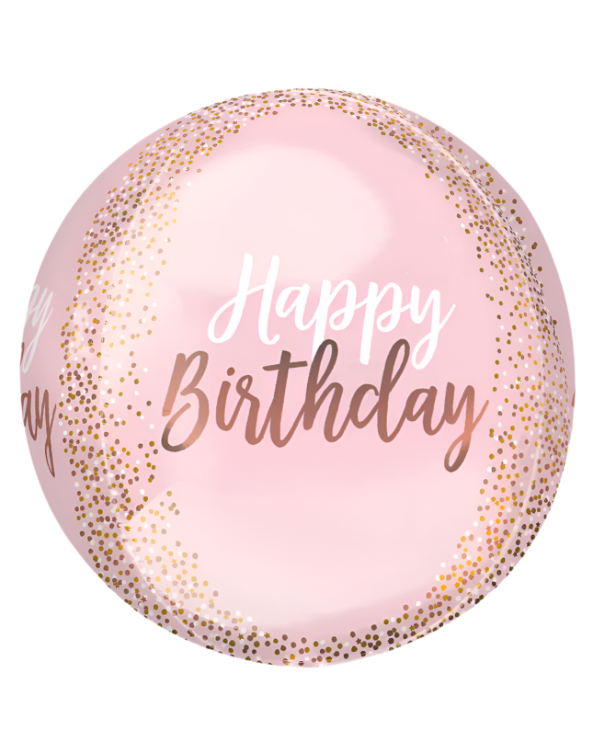 Happy Birthday 24" Orbz Pink And Rose Gold Balloon With Helium
