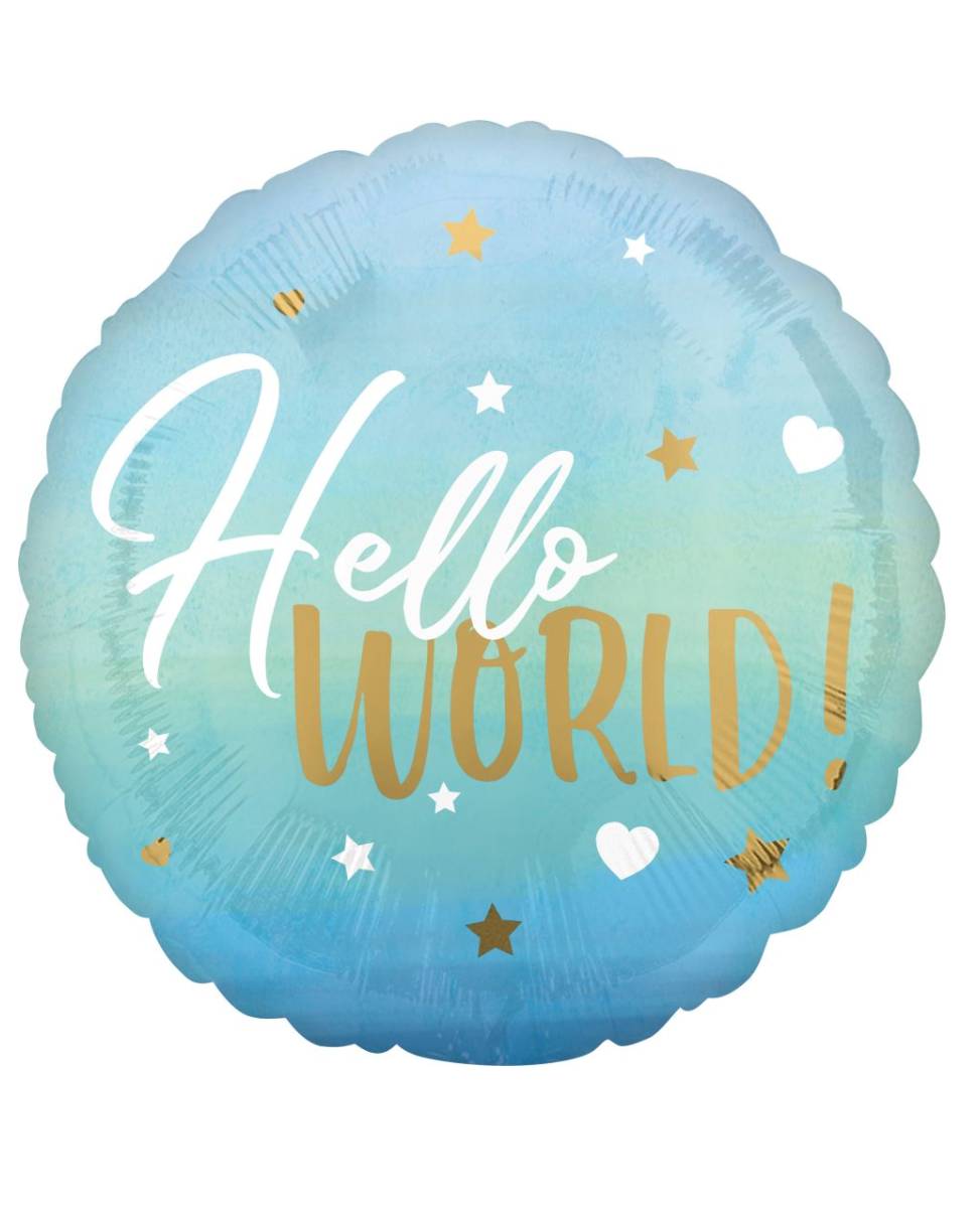 Announce the exciting news with this charming 18" Hello World It's A Boy balloon. Perfect for baby showers, gender reveals, and new arrival celebrations, this foil balloon arrives pre-filled with helium and ready to display. The classic blue and white design complements any party décor. Make the moment memorable with a balloon that captures the joy of welcoming a baby boy into the world.
