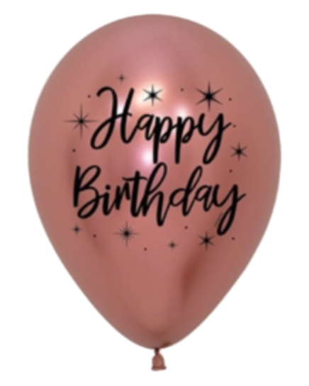 Metallic Rose Gold Happy Birthday Printed 12" Latex Balloon With Helium