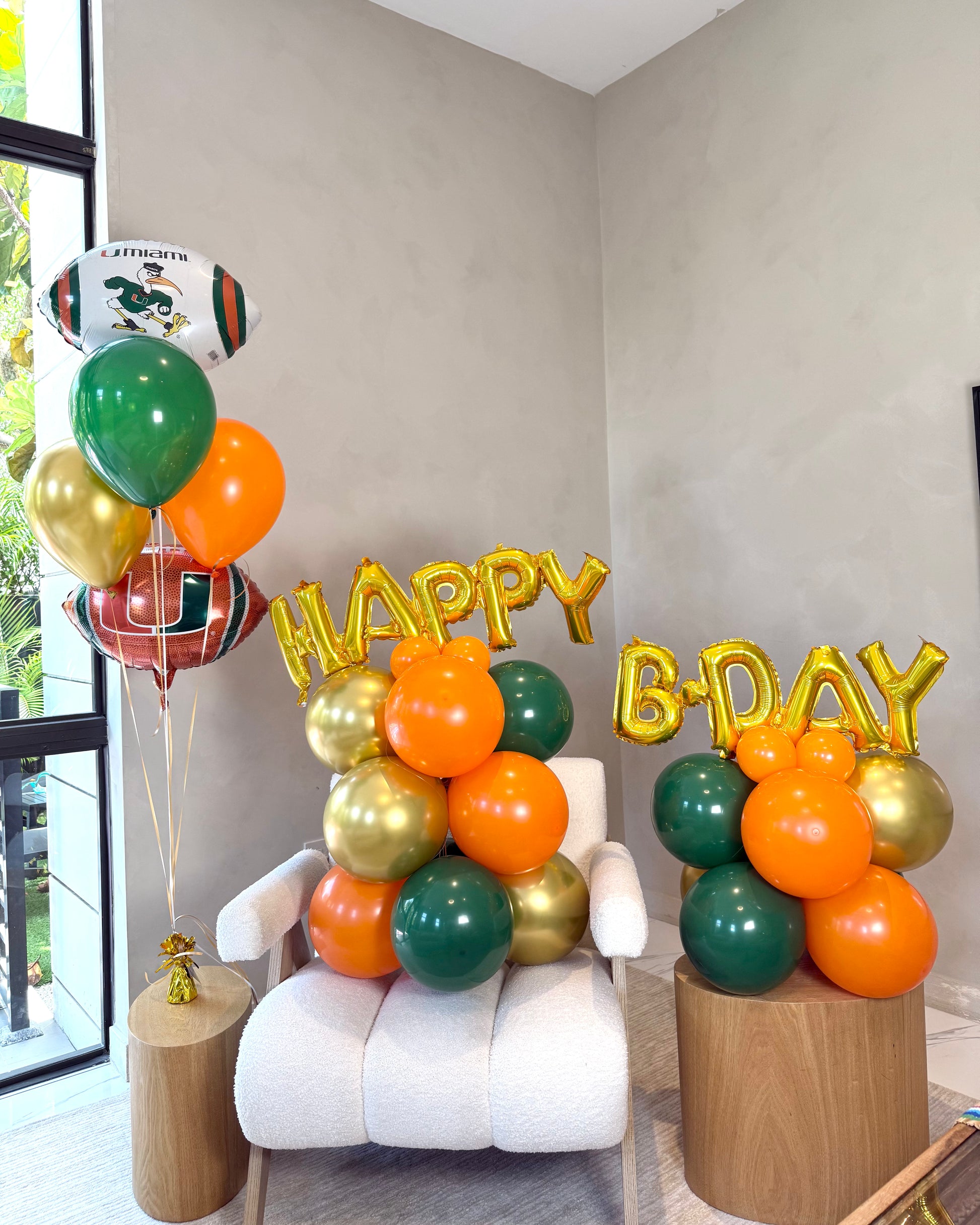 University Of Miami Happy Birthday Balloon Structure With Helium Balloon Bouquet